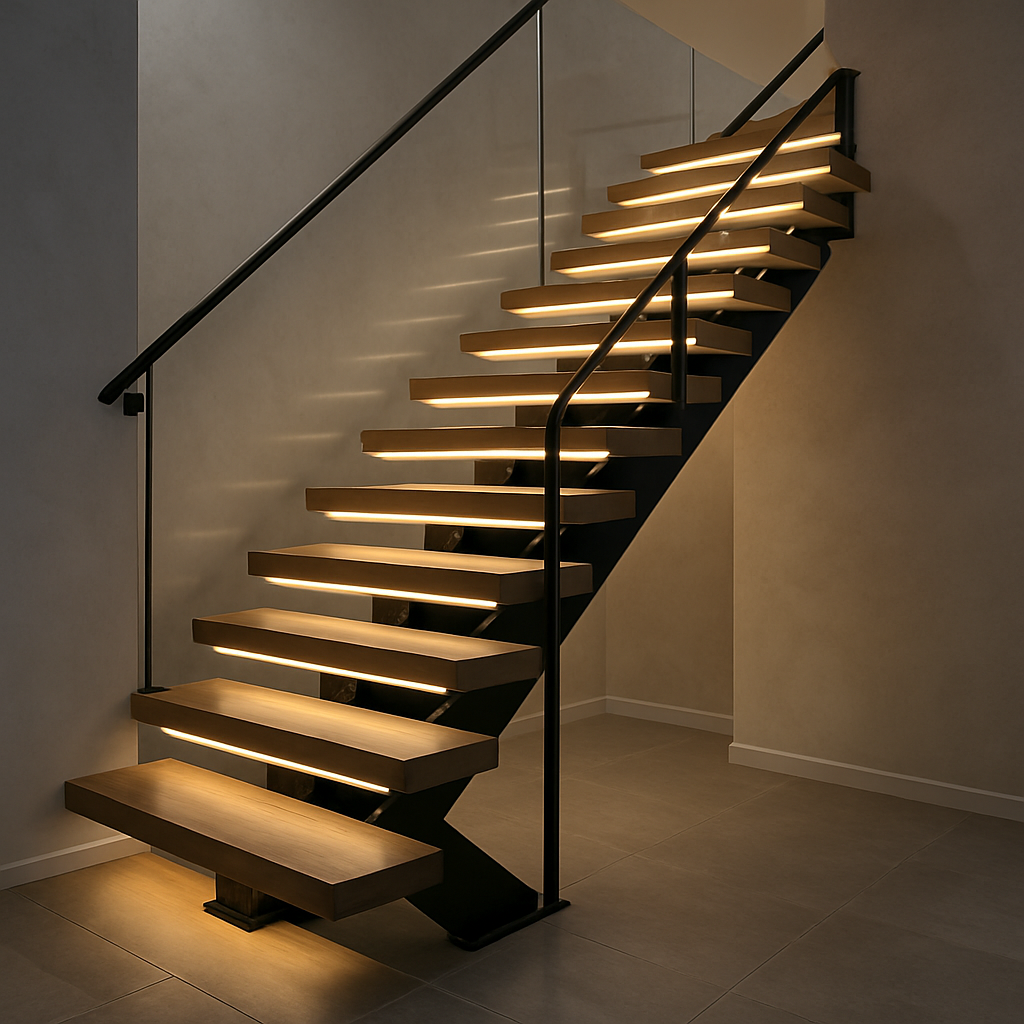 Basamaklarda özel kaymaz profil ve kaplamalar kullanılarak güvenli yürüyüş sağlanır.