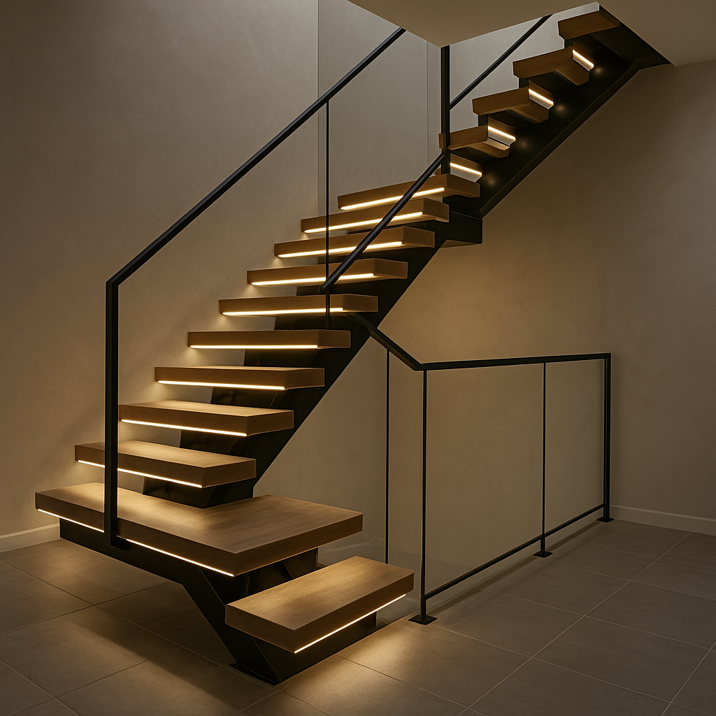 Yüksek Estetik Uyumu: Cam korkuluk, spot aydınlatma, ahşap veya taş yüzeylerle kişiselleştirilmiş modern merdiven tasarımları oluşturulabilir.